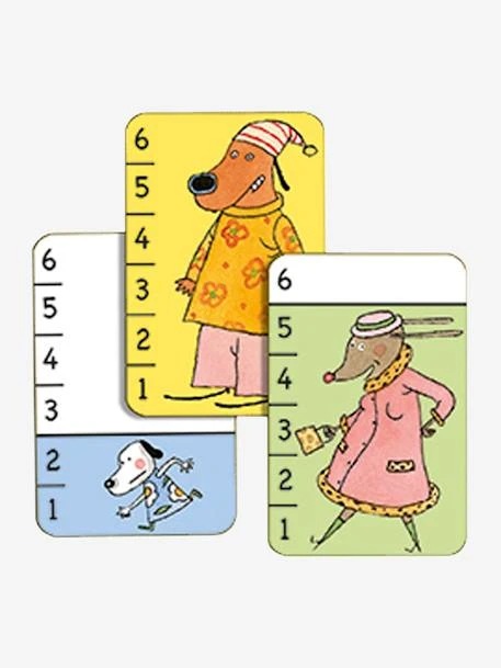 Un jeu de bataille adapté aux petits ! Chacun retourne sa carte et c’est le plus grand chien qui gagne ! Si 2 chiens sont de la même taille, attention, il y a « batawaf !