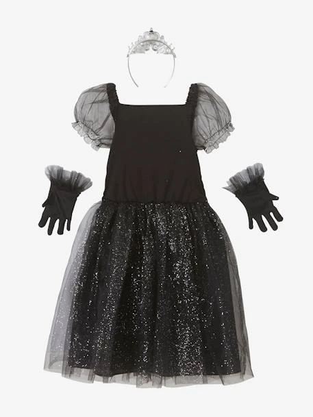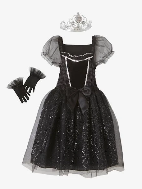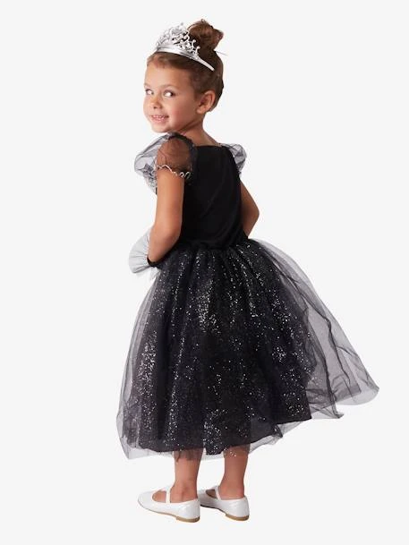 Pour les petites filles qui rêvent de donner la réplique à leurs acteurs préférés, voici un déguisement spécialement imaginé pour les étoiles montantes du cinéma ! Robe ornée de velours, sequins, satin et tulle, gants noirs et diadème, c’est parti pour la montée des marches et les séances d’autographes !