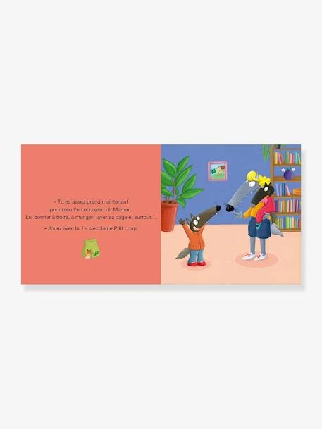 P’tit Loup apprend pas à pas à prendre soin de son nouveau compagnon : le nourrir, nettoyer sa cage et surtout jouer avec lui !