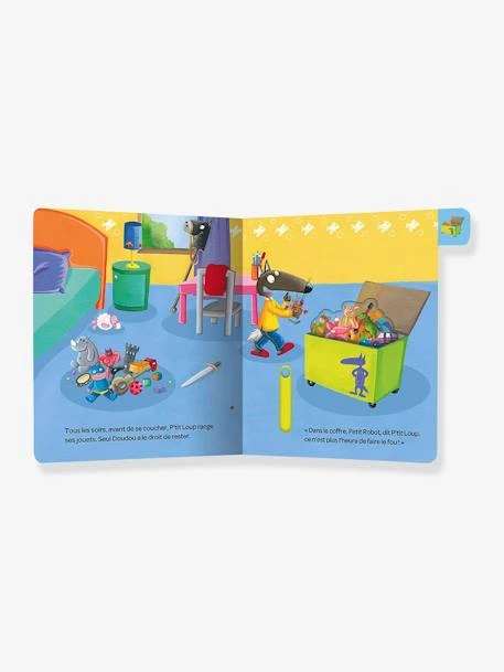Le premier livre avec des mécanismes pour appréhender le coucher avec P’tit Loup. On y retrouve chronologiquement les grandes étapes du rituel du coucher : ranger sa chambre, se brosser les dents, mettre son pyjama, lire l’histoire du soir, etc.