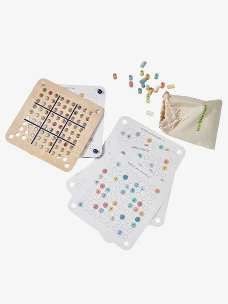 - Comprend : 1 support de jeu en bois, 5 fiches de sudoku recto verso donc 1 fiche vierge pour créer le sudoku de son choix et en faire à l’infini, les solutions, des pions en bois colorés avec chiffres de 1 à 9 et un pochon pour ranger les pions